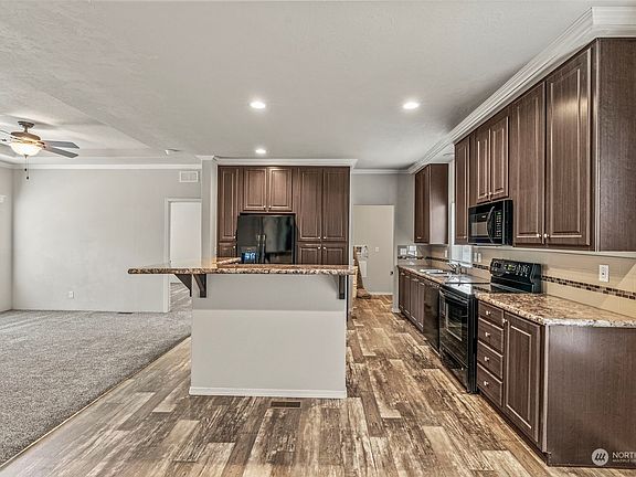 Take a look at this beautiful & well appointed home! This brand new Clayton Built manufactured home features a great floor plan with 3 bedrooms, baths, 1404 square feet and crown molding throughout the main living area! The living room features a trayed ceiling and ceiling fan! The kitchen is a focal point of the home. Featuring a complete appliance package, recessed lighting, plenty of cabinet & counter top space, and island with breakfast bar. The family room has a built in entertainment center and is a part of the open concept floor plan. The primary bedroom comes complete with a walk in closet and attached 3/4 bath with double sinks. The lot has been freshly landscaped and has RV paring on the side. Come pay a visit today!