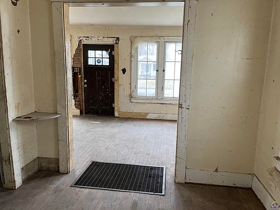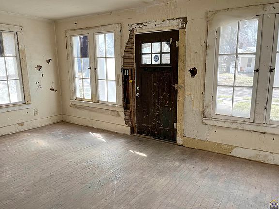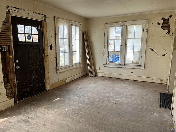Make this TINY HOUSE your own. Bare bones interior caused by a tenant who did the damage. No kitchen cabinets or bath fixtures. Floor furnace does not work. Back porch. Large back yard. Garage. Front drive. Newer electrical box. Great neighborhood surrounded by more expensive homes. Being sold "as is".