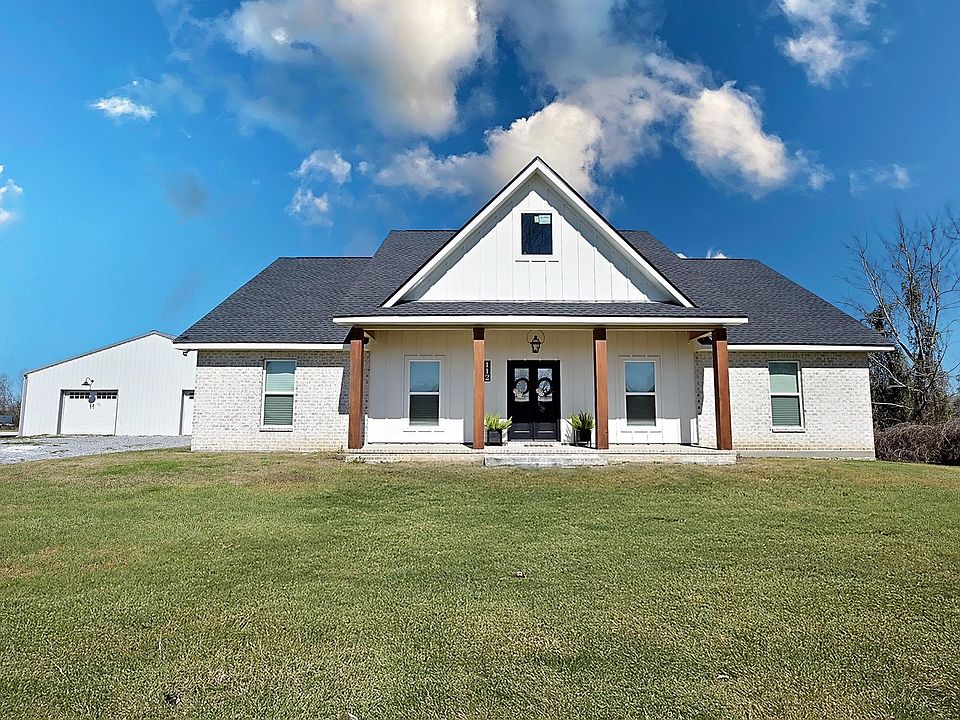 Discover the perfect blend of rustic charm and modern comfort at 112 Saint George Road in Schriever, Louisiana! Set on a private one-acre lot, this beautifully designed home features stunning cypress beams, crown molding, and luxury vinyl plank tile flooring, creating a warm and inviting atmosphere. Step inside to an open-concept living area where natural light fills the space. The gourmet kitchen boasts a spacious island, abundant storage, and an oversized walk-in pantry, making it a dream for home chefs. Gather around the gas fireplace in the cozy living room, or take the party outdoors to the expansive covered patio—ideal for entertaining or relaxing. This property offers more than just a beautiful home. A large detached workshop/garage provides incredible storage or workspace, while the private guest apartment with two bedrooms, a full kitchen, and a living area is perfect for extended family or rental income. Two tankless water heaters ensure efficiency, while the thoughtful layout maximizes space and convenience. Living in Schriever means enjoying a friendly community with charming local restaurants, parks, and shopping, while still being within an hour’s drive to New Orleans and Baton Rouge for world-class entertainment and culture. Families will love the proximity to Schriever Elementary, Evergreen Junior High, and H.L. Bourgeois High School. If you’re looking for a home that offers space, character, and modern convenience, this one is a must-see. Schedule your showing today—this gem won’t last long!