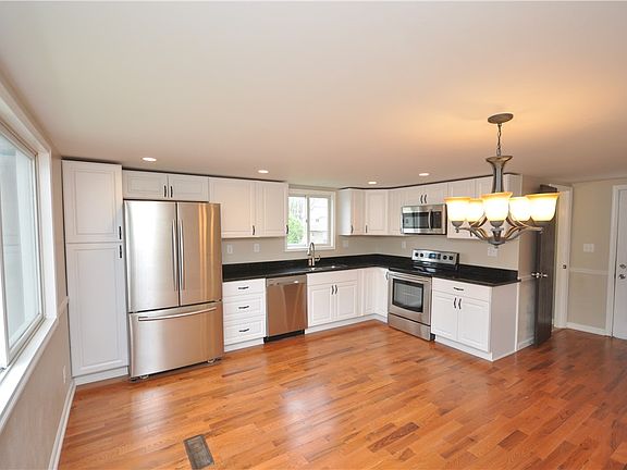 Stunning Renovation! Starring a new granite kitchen with dining area, stainless appliances and warm hard wood floors throughout. 4 bedrooms and 2 full baths, generous room sizes. Master bedroom with large walk-in closet, sky light & palladium window. Convenient 2nd floor laundry. Large closets in all bedrooms. In addition to the totally new interior, there's new a/c, plumbing, hot water tank, concrete patio and sidewalk. Come enjoy the country front porch, large corner lot and level back yard!