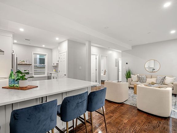 This striking brand new gut renovation is bright and spacious with an open floor plan as well as central air, new hw floors, and recessed lighting throughout. The modern kitchen has quartz counters with an oversized peninsula, white cabinetry with extensive storage, stainless appliances, a vented out hood, wine and beverage fridge, matte black accents and washer and dryer in unit. Flowing from the large, luminous living space with room for a dining table, the primary bedroom is king sized with walk in closet and stylish ensuite bathroom with heated floors and walk in shower with glass enclosure. The 2nd bedroom accommodates a king bed, is filled with light, and boasts a large built out closet while the 3rd bedroom fits a queen bed or functions well as an office. Outside the unit, the front deck is sunny and sizable and has an outdoor closet for extra storage. The back deck overlooks a large private patio with elevated views and a huge private storage room sits in the basement. Rent to own possible. Flexible move in date.