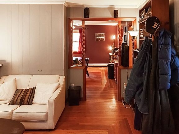 Welcome home to this beautiful three bedroom in Fall River. With hardwood floors throughout and ten foot ceilings, you'll be delighted by the space and open floor plan of the first floor. A cozy kitchen and large dining room with a half bath makes this a perfect area for entertaining. Upstairs, the hardwood floors and high ceilings continue into three large bedrooms and a huge full bath. Bring your imagination to the basement with a separate entrance to the attached garage, complete with a wet bar, 1/4 bathroom, and great potential for an office, spacious playroom, or in-law. Updates include a new roof in November of 2022, hot water heater in 2021, furnace in 2016, and a low maintenance aluminum exterior. Less than one mile from the upcoming Southcoast rail station and 195, and less than two miles from 24. Easy access to local amenities. This one won't last!