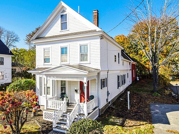 This is a beautifully updated and well-maintained home with classic New England character. Enjoy the large red barn which is attached to the house - perfect for storing all your toys or projects. There are wood floors throughout, checkered tiles in the laundry room, built-in cabinetry in the dining room, and a modern and updated custom kitchen. The built-in cabinetry in the dining room and the modern kitchen are perfect for those who love to cook and entertain. There is also a first-floor office that could be used as a small bedroom if needed. The sitting room is spacious and adjoins a living room with wood burning fireplace. A large foyer leads upstairs to two full bathrooms and four bedrooms with a rear stair beck down to the back entry. The bedroom furthest to the back of the home on the second floor features a patio door that leads to a private rooftop deck and provides for access to the second level of the barn. Many updates, including windows and insulation. Lots of potential in this turn key property zoned for either residential or business which gives you many options. Don't miss this one!