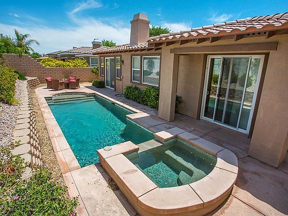 Beautiful pool home in a nice quiet neighborhood in Rancho Mirage. This home is very well detailed to perfection. Features include a beautiful tile and wooden floor throughout the house.The large kitchen has cabinet space also has multiple drawers throughout, this large kitchen is spacious and is very bright and beautiful. The master bedroom is amazingly beautiful it comes with a sliding glass door that leads to the back yard it also has a bathroom with a Jacuzzi tub and a nice spacious sink. One feature bedroom as an office includes a door to the back yard. It is a 4 bedroom and 2 baths. This home also comes with a beautiful patio and a huge pool and Jacuzzi.