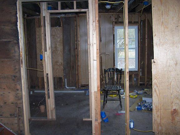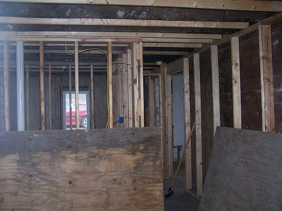 Fixer upper is three bedrooms and one bath home sitting on a nice level lot.. This home has a new roof, new wiring and new thermal pane windows. Two bedrooms are downstairs and the third is upstairs. Home is under renovation with new studs already in place, it is totally gutted and ready to finish. A diamond in the rough.