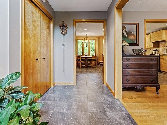 OPEN HOUSE MUST PRE REGISTER ~ Designed in the contemporary style, this home is situated on a 1.6 acre lot and steps away from Whitehall State Park. This home is a peaceful retreat offering a park-like setting with a professionally landscaped front yard, spectacular gardens, a terraced patio along with a wooded backyard and a wonderful nature trail winding through it. The classic design offers spacious rooms, an abundance of natural light and an open floor plan for ease of entertaining. The expansive kitchen includes a large granite island, stainless steel appliances a casual dining area and is open to the family room. Both rooms feature stunning views of the backyard, expansive back deck and patio area. The sun drenched, sunken living room showcases a majestic floor to ceiling stone fireplace and custom bookshelves with exterior access to a private balcony. The en-suite Master is designed w/a gorgeous double vanity, soaking jetted tub, glass shower, exquisite lighting and large closet