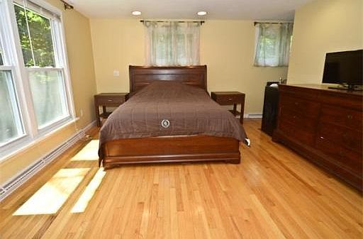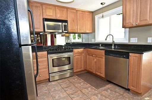 Remodeled ranch with open concept, flexible living space. This home's features include a granite and stainless kitchen; combination living room/dining area with wood burning fireplace, and sliders to a large deck overlooking a private, wooded area; shiny wood floors; and spacious bedrooms. The walkout lower level - with full daylight windows - is finished with the 4th bedroom/office, 3/4 bath, family room with fireplace, media room, mudroom and laundry, and also has abundant storage. Additional updates include 2-zone hydro-air heat, 2-zone central air, insulated windows, and 200 amp electrical service. The neighborhood schools, Bridge Elementary and Clarke Middle, are both Blue Ribbon rated. Convenient location to Alewife Station, Route 2, and I-95.