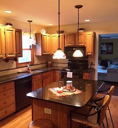 Splendid two story colonial featuring 4 beds and 2.5 baths on corner lot in fantastic family neighborhood. Hardwood floors in kitchen, family room, and upstairs. New carpet in living room. Granite counter tops, island and tile back splash in kitchen. Crown molding in living room and family room. Gas fireplace in living room. Family room wired for surround sound. Finished basement with bar. Huge deck with screened porch and Tiki bar with granite countertop and TV for entertaining. Large half acre lot with shed with electric run to it. If you like entertaining, then look no further.