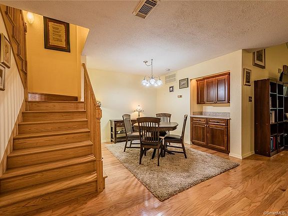 This condo has it all... 3 bdrm, 2 1/2 bath and a rare 2 car attached garage where you can walk straight into your unit. It's been updated and upgraded....1st Floor Master Bedroom Suite has carpeting, walk-in shower, newer vanity with granite, large walk-in closet. Condo has an Open Floor Plan.....Living Room with hardwood floors, fireplace, vaulted ceiling and slider to covered porch, kitchen with cherry cabinets, quartz countertops and ss appliances, Dining Room with hardwood floors, built in cabinet with quartz countertop. The laundry room, 1/2 bath and large coat closet is in hallway between front entrance door and garage entrance. This condo is set up so you could live on the first floor only, if needed or wanted. This beautiful staircase to the 2nd floor was completely ripped out and rebuilt with beautiful hardwood. The original staircases were built for carpeting only. You won't see these stairs in other units in Spyglass. The 2nd floor has two bedrooms with a jack and jill bathroom. The bathroom has been updated. Both bedrooms have wood floors and HUGE walk- in closets. There is also a door to the attic from one of the bedroom closets. Plenty of storage here. The Assocation has an inground pool to enjoy all summer. Location, location, location!!! Easy access to all major hwys and major employers in Groton, New London, Ledyard and Montville as well as shopping, banking and restaurants nearby.