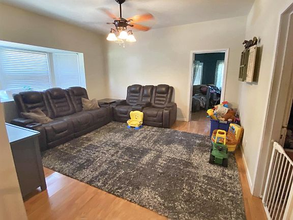 Welcome Home! Fantastic 3+ bedroom family home, numerous updates, and there's a detached garage/workshop! Extra's include....Central air & heat new 2020 (heat pump) / Water heater new 2020 / Staircase rebuilt with new rails & carpeting 2020 / Bathroom on main level remodeled in 2021 / front covered porch / Laminate flooring in main living areas / Kitchen offers an abundance of cabinetry, and comes equipped with appliances (built in microwave, new 2020) / Interior arch doorway / Nice ceiling fans / Living Room has a bay window / There has been some wiring & insulation upgrades / Shingled new approx. 2005 / Curtains & faux wood blinds stay with the home / Concrete patio / Chain link fenced rear yard / Plenty of parking / Storm shelter / Detached Garage-Workshop has electric, floor drain, 2-10' overhead doors, 1 entry door, LED lighting was recently installed. Peach, Pecan & Mulberry trees, there's an excellent garden spot too!