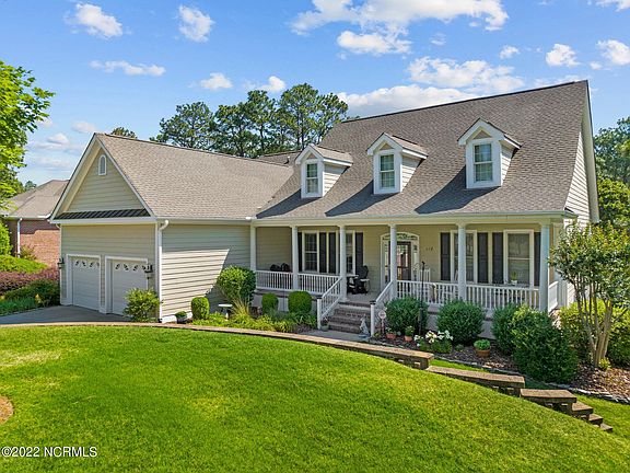 Located on the 8th Hole and 5th Tee of the Longleaf Country Club Golf Course, this beautiful cottage home is ready for you to make it your own! Covered Front Porch welcomes you into the foyer with the formal dining room area to your left. Just outside of the Dining Room, you'll enter the Great Room - complete with natural gas fireplace, built-in shelving and an abundance of natural lighting! Kitchen provides you with maple wood cabinets, granite counters, pantry, a breakfast bar and nook! In the Owner's Suite, you'll find a large soaking tub, walk-in shower, double sink vanity and walk-in closet! Completing the main floor are two other spacious bedrooms, a full guest bathroom and a mud room with so much storage and counter space! Downstairs is a full walkout basement with superior walls! It features 2 bedrooms, full guest bath and large family room! Large open air deck on the main level with stairway access to a covered patio, accessible from walk-out basement. Keep the yard looking immaculate with the 6 zone sprinkler system. You can also take part in all that Longleaf Country Club offers with the Longleaf Golf & Family Membership option.
