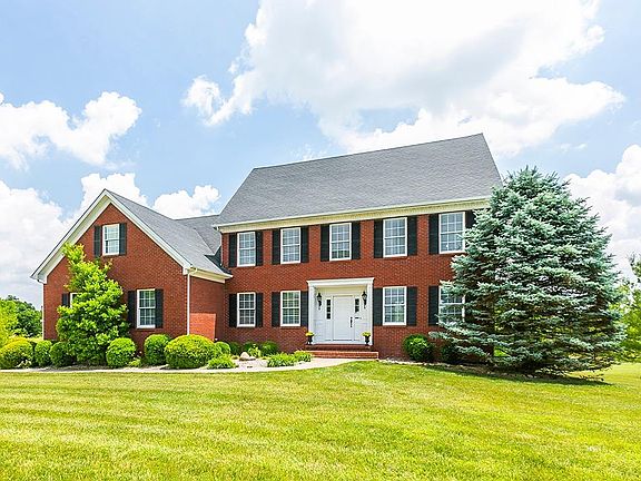 Wonderfully idyllic and quintessentially Bluegrass, this property was custom built by Robert Gant in 2004 from a William E. Poole plan and 2 minutes from Evans Orchard. Immediately upon arrival you'll notice much attention to detail, all brick, beautiful hardwood floors on the first floor, tall baseboards through the house, open concept great room and kitchen, expansive freshly painted screen-in covered deck for lazing about on warm Summer evenings.There are double staircases, one leading from the great room, the other from the foyer. The pond is stocked with bass, bluegill, and catfish, is in the shape of the state of Kentucky and lends a most tranquil appeal to the stunning view of the gently rolling 7 acres.The barn was built from wood then encased in metal. It has a concrete floor and is approximately 30'x40'.The shed attached to barn is approximately 12'x40'.You will find the geo-thermal HVAC especially efficient. The roof coverings were replaced in 2012.So much more to tell.
