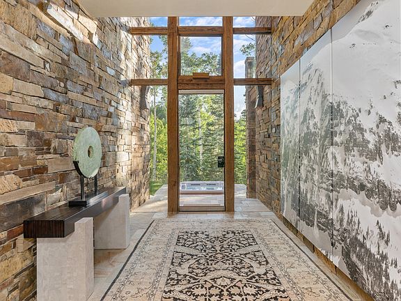Beautifully appointed Mountain Modern home offering expansive views and a ski-in/ski-out location adjacent to the Bridges ski run. A masterpiece of contemporary design, entry is into a 35ft long gallery with a soaring ceiling and walls of glass at both ends. Extending into the living area, the walls of glass offer incredible views of the San Sophia mountains and surrounding forest. Many nice amenities including White Oak floors, Birch cabinets and 5 fireplaces. Home also has a Ski Room, Wine Room , Private Office and Family Room with pool table. Awesome bunk room for kids and additional guests and air-conditioning and humidification systems for year round comfort. Beautiful view decks and patio with hot tub. Driveway has been expanded for easy access in and out of the property. Roger Mason painting in Living Room is excluded from purchase.