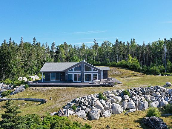 A Seaside Dream. Thoughtfully designed bungalow nestled at the end of a winding driveway on 5.2 acres of land, 315 feet of bold oceanfront, and a view that will captivate you. This custom designed, 2-bedroom, 2-bathroom home features cathedral ceilings and expansive floor-to-ceiling windows that flood the open-concept living space with natural light. White-washed pine walls and ceilings along with the light hardwood floors add to the modern coastal charm. Enjoy sunsets in the evenings from your main living area by the cozy wood stove or outside on the wrap around deck while taking in the sounds of the crashing waves. Each of the two spacious bedrooms offers private patio access and generous closet space. The primary suite is a true sanctuary with breathtaking ocean views to wake up to every morning and an en-suite bathroom. Thoughtfully designed with ample storage throughout, this home offers both comfort and practicality. Outside, the landscape is low-maintenance, allowing you to spend more time enjoying nature and less time managing it. A wired double car garage provides plenty of space for vehicles, tools, and a workshop. With high-speed FibreOp internet, this serene escape is also a functional space for remote work or creative hobbies. This stunning oceanfront property would be ideal for those who want to enjoy low maintenance one level living with privacy on the coast of Nova Scotia year round or as a vacation retreat. There are many white sand beaches nearby, including the Natures Conservancy Sandy Bay beach, Thomas Raddall Provincial Park, Seaside Keji Adjunct, and many more. Located 30 Minutes to the town of Liverpool and 1 hour and 45 minutes to the city of Halifax.
