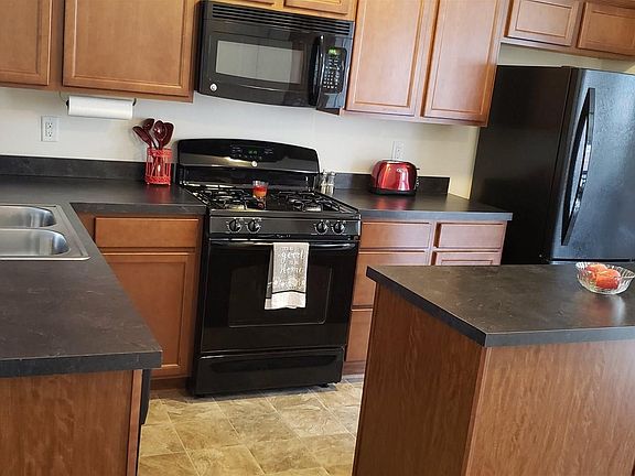 - RoomKitchenFeatures: Kitchen Island, Pantry, Recessed Lighting, Eat-in Kitchen, Counter Tops-Formica, Floors-Vinyl, Cabinets-Stained