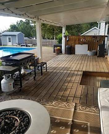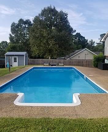 - Exterior Features: Paved Drive, Covered Patio, Fenced Yard, In Ground Pool, Storage Shed, Covered Porch, Liner Pool