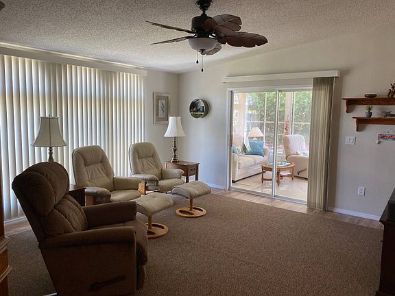 This is a must-see home located in The Gardens, a 55+ community. This home is located on a quiet street in the back of the community. It has a large living room, dining room, and kitchen. The kitchen has windows that overlook the back yard with trees and flowers. Roof is 4 years old; water heater is 1 year old, and air conditioner and duct work are 4 years old with a UV light sterilizer. All appliances include - washer, dryer, stove, microwave, dishwasher, and a LG refrigerator (2 1/2 years old). Kitchen has Corian countertops, backsplash tile, under-cabinet LED lighting and lots of cabinet storage. Lanai is on the back of the home facing trees and flowers. Lanai has ceramic-tile floors, new screens and vinyl, insulated walls and roof, and new ceiling fan with remote control. This home comes partially furnished. Lot rent home is $730 per month and included 2 HD boxed, 200 cable channels, high speed internet, mowing, trimming, edging, and all the amenities at the club house. All listing information is deemed reliable but not guaranteed and should be independently verified through personal inspection by appropriate professionals. Integrity Mobile Home Sales cannot guarantee or warrant the accuracy of this information, measurements or condition of any property. Measurements are approximate. Lot rent is subject to change.