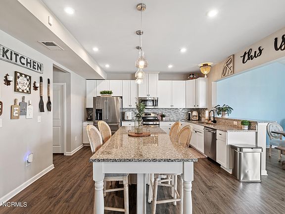 **Seller is offering $10,000 towards Buyer's closing cost with a full price offer.** Welcome to this stunning three-story home, offering over 4,000 sq ft of luxury living space. This spacious residence features 5 beds, 3.5 baths, a loft, a bonus room, and a first-floor flex room, providing versatile spaces perfect for home offices, a gym, or a media room, this home adapts to your needs. The modern kitchen is a chef's dream, huge island, granite counters, SS appliances, walk-in pantry, and morning room. The open layout of the first level includes a spacious family room with a beautiful stone fireplace, LVP flooring, dining/ living combo. 2nd floor offers oversized owner's suite with two walk-in closets, a sitting area, and a jetted tub, along with three additional spacious bedrooms, and loft. 3rd floor offers a bonus room, 5th bedroom, and a full bath. The fenced-in yard with patio is perfect for BBQs. Located just minutes from the NC/VA border, easy commutes to nearby military bases, Norfolk, and Outer Banks. Make this your first stop! Schedule your showing today!