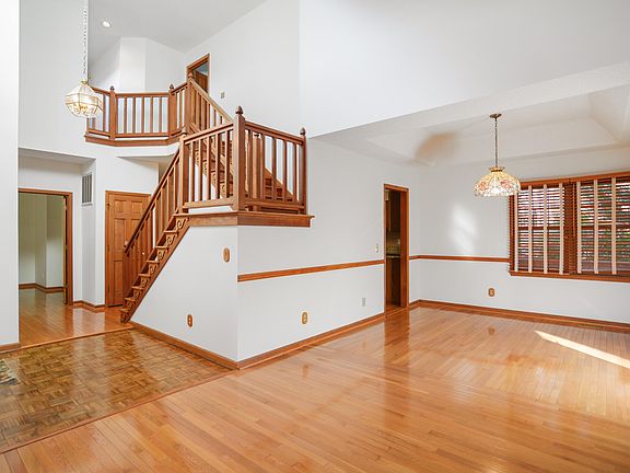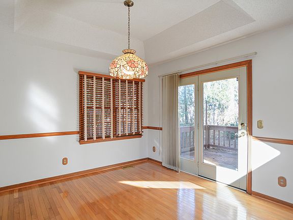 Lovely 4 bed 3 bath transitional home in highly desirable Cary locale. Hardwood floors throughout home. Spacious family room features cathedral ceiling & wood burning fireplace. Formal dining includes trey ceiling. Eat-in kitchen offers granite countertops, stainless steel appliances & tile backsplash. Separate living/keeping room. 1st floor guest suite. Spacious primary suite has vaulted ceiling, separate sitting area with wood burning fireplace, private balcony, dual vanities, soaking tub with separate tile shower & 2 walk in closets. Wrap around back deck with wooded views.