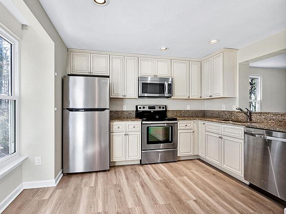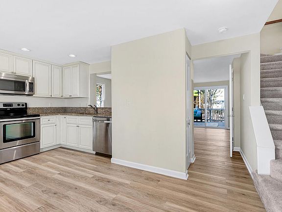 Nicely updated 2 bedroom end unit townhome with finished walk out basement near to downtown Cary. Second floor includes full bathroom with 2 bedrooms. Main floor includes kitchen, living room, and half bath. Walk Out basement includes full bathroom, rec room and laundry room just refinished under Permit. New LVP on all 3 levels. Staircases have new carpet. Property features 2 decks and paver patio overlooking the community pond. New water heater and AC system installed in 2022. Vinyl windows and sliding doors installed in 2013. All appliances convey with the property.