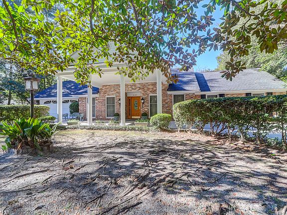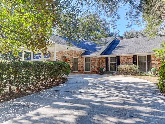 This unique home features 3 bedrooms, 2.5 baths, and is located in the historic neighborhood of Tea Farm in Summerville. The home has a five color blend brick-lay exterior with a running-bond pattern which highlights its distinctive character. This home boasts a large 20,000 gallon inground pool with screen enclosure & large fenced back yard. Inside the formal dining room and living/music room flank the foyer. The separate kitchen with breakfast area, family room with fireplace, and large game room with a wet bar all add up to great entertaining. Stone tile flooring throughout the informal areas and bedrooms downstairs. The novel spiral stair case leads to the second story primary bedroom suite with large walk in closet, ensuite bathroom, laminate wood floors, fireplace and open balcony Downstairs has another large primary bedroom with two closets. The 3rd bedroom is connected to the hall bath and has outside access to the back yard. The covered patio has plenty of room for both lounging and dining. The property also has a concrete pathway from the pool enclosure leading to the roof-enclosed BBQ Pit which also has electricity. There is a custom wrought iron gate built by a local artist which accents the left hand side of the property and was added by the owners as a tribute to the traditional Charleston heritage. The home has been in the same family for over 40 years. ~~NEIGHBORHOOD TIDBITS ~~ The US Government leased 200 acres from Henry Middleton Plantation in 1880 for tea production. Later, Dr. Charles Shepard a medical professor at MUSC imported exotic plants to create beautiful gardens and roadways. Tea Farm became the first commercially viable tea farm in America as noted on the historical marker sign on the roadway near the home in the neighborhood.