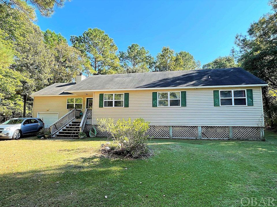 Take a look at this cozy 3 bedroom, 2 bath one story ranch style home with library/den. Features include open floor plan, open kitchen including pantry, large en suite bedroom, one car garage with extra storage, 38,765 sq. ft. large homesite and private back sun deck.  Great neighborhood and close to the Wright Memorial Bridge and all the beach has to offer.