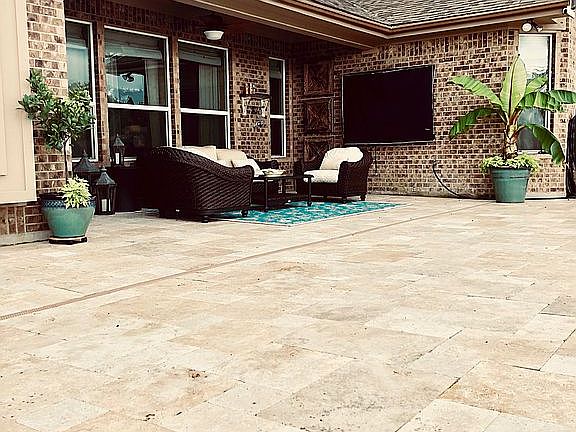 You will fall in love with this beautiful fully updated home with a spacious backyard oasis. Tons of upgrades such as 40 year 3 tab tri color shingle roof, 3 inch plantation shutters on entire front of house and custom Roman shades along backside. 6x24 Marazzi full colored body porcelain tile laid in herringbone pattern covers the main living floors. Upgraded carpet in bedrooms. Office and powder room walls are covered in shiplap giving these rooms instant personality. The board and batten wood walls in the dining room and accent wall in living continues this modern farmhouse feel. The outside oasis has gorgeous Versailles pattern travertine that covers the entire back porch and pool area including the Pavilion that includes a covered area with an outdoor fireplace. Great for hanging out and watching the amazing sunsets with no obstructed views, just open fields behind this home!
