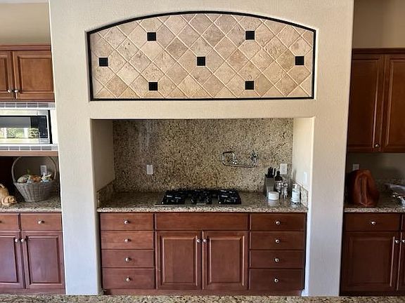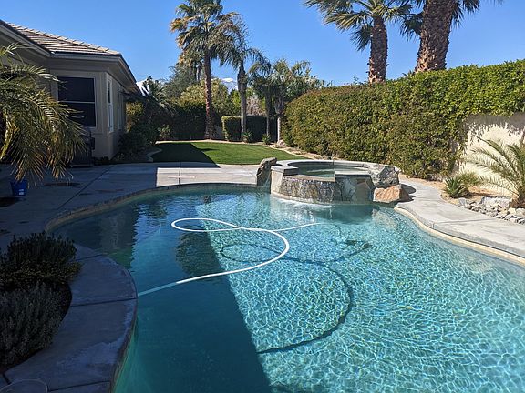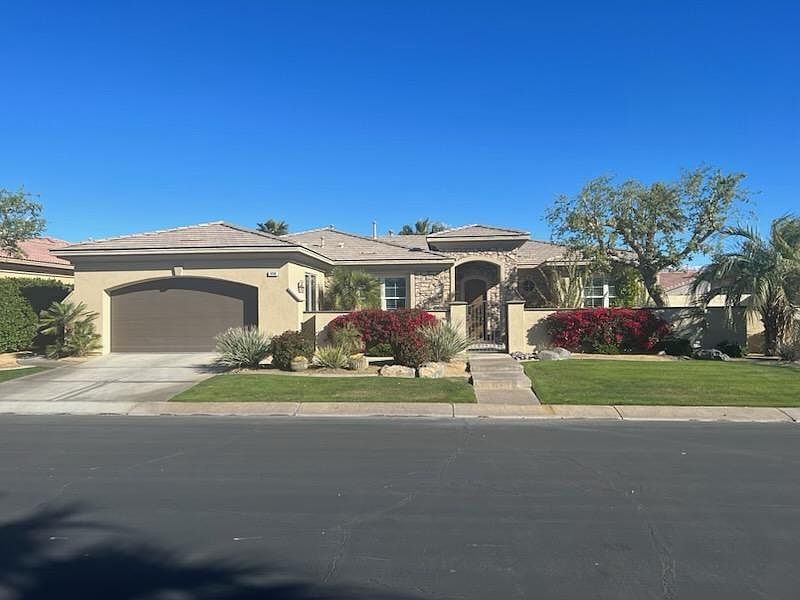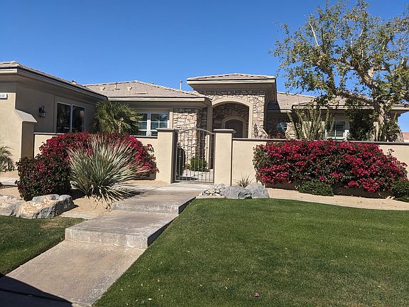 Welcome to Brenna@ Capri, Palm Springs Life top rated development. UNFURNISHED/ANNUAL LEASE ~ Most popular floor plan. Enter a huge private courtyard. Double door formal entry. 10' ceilings. Granite slab counter tops. Gourmet cooking Grotto w/pot filler. Large wet bar with wine refrigerator off dining room. Stack stone fireplace in family room. Interior location located on a 10,454 Sq. Ft. lot. Oversized (2 SUV's) garage. Next to Ronald Reagan Elementary and Freedom Park, 26 acres: baseball/softball fields, multipurpose fields (soccer/football), basketball courts, 16 new pickle ball courts, volleyball courts, skate features and picnic shelters & trails. (More pics to follow once tenant vacates. New carpet 04/01) Long term, minimum one-year lease.