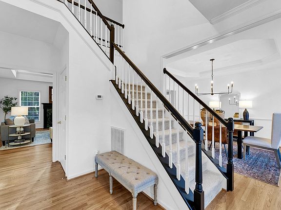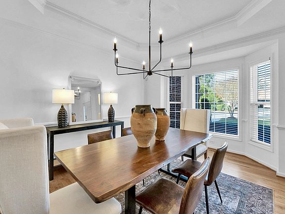 An exclusive opportunity to reside less than a half mile from the prestigious Prestonwood Country Club in a home that will surely make everlasting first impressions. Enter the soaring foyer to find a striking design palate of clean white walls & contrasting accents. Your attention is quickly captivated by the gorgeous dining space with intricate trim detail as well as the home office infused by natural light. A double-height family room provides a dramatic architectural element luring you into a remarkable kitchen featuring honed granite countertops & plenty of space for entertaining. The secluded main floor suite accommodates any guest comfortably. Upstairs you'll adore the vaulted primary bedroom & its TWO large walk-in closets. Feel the essence of open concept as you cross the catwalk to spacious secondary bedrooms & generously sized bonus. Spend your evenings relaxing on the back deck overlooking a flat, grassy yard lined by a wooded privacy buffer. Shopping & dining are convenient living in close proximity to Bradford Square & Stone Creek. Only minutes to RDU airport & RTP. Award winning schools. Welcome home!