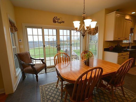 Dramatic two story entry with turned staircase welcomes guests. A main floor office with French doors and formal dining room with customized double tray ceiling are the front rooms. Across the back of the house is an open-designed family room with stone fireplace and center island kitchen with "high end" appliances. The many windows provide a magnificent, unobstructed view of the countryside and natural light. Kitchen boasts walk-in pantry, granite counters, specialty beverage coolers and an adjacent locker style storage near the three stall garage for jackets, backpacks, briefcases, and more.The upper level master bedroom suite is a welcome respite at the end of the day, offering vaulted ceiling, massive walk-in closet, oversized, ceramic walk-in shower with multiple rain-style and body sprays, jet tub, oversized double sink vanity as well as surround sound controls for many areas of the home, patio and pool. There are three additional generous sized bedrooms with large closets. Bedroom two offers en suite bath and the other bedrooms share an adjacent Jack n Jill bath. The super large basement offers walk-out to side yard. The new, in-ground salt water pool is a modified sports-style with two shallow ends and six-foot middle depth. Comes with a volleyball net and poles set in concrete. There is also a generous sized storage barn for lawn equipment. Call today for your private showing!
