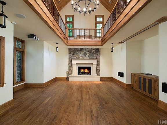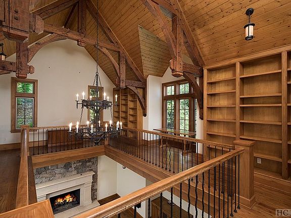 Stunning long range view of Lake Toxaway and one of NC's most spectacular views! This 4 BR, 4.5BA mountain lodge has a view from every room. A luxurious master suite, cook's kitchen, dining space with view and fireplace, sitting area, and a one of a kind two story library/ media room! Extensive decks, groomed landscaping, 1,000 gallon buried gas tank that serves a whole house generator, first class construction and ample room to grow...this is a must see!