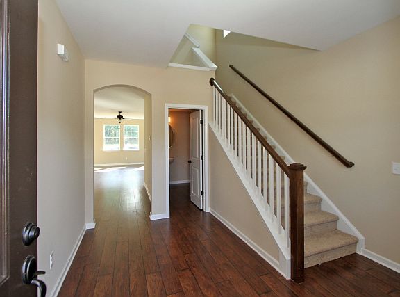 This UPGRADED Colleton is the perfect combination of SPACE and COMFORT! It is classically beautiful with a warm and neutral color scheme and includes some of our most popular upgrades! On the first floor, you'll find a FLEX ROOM (great for a SEPARATE LIVING/DINING room or STUDY) and a nicely appointed powder room for guests with two storage closets. The spacious family room, cafe, and kitchen create an OPEN FLOW across the back of the home, which is an ideal setup for entertaining! The kitchen features GRANITE countertops, a GRANITE ISLAND with pendant lights hanging above, 42'' cabinets with brushed chrome hardware, a walk­in pantry, GAS RANGE and STAINLESS GE APPLIANCES! Gorgeous HONEY OAK Laminate WOOD FLOORING is throughout the family room, foyer, flex room, halls, kitchen, cafe, kitchen, cafe, and powder room. The entire home is painted with a classic upgraded taupe paint including the FULLY FINISHED 2 CAR GARAGE! The backyard PATIO is great for a BBQ with friends or relaxing after a long day. Upstairs, an open LOFT area would make a fantastic media room, office, or play room. Two very large spare bedrooms share a bathroom with raised vanity sinks and TILE FLOOR. The MASTER SUITE features tons of natural light and a HUGE WALK­IN CLOSET. The master bath offers GRANITE COUNTER, DUAL VANITY SINKS, FRAMED MIRROR, TILE FLOOR, GARDEN TUB with SEPARATE STANDING SHOWER, and a separate water closet for privacy! Our energy efficient homes support healthy living while lowering utility bills for decades to come. Every home we build is given an independent rating that calculates its energy performance on a nationally recognized index called HERS (Home Energy Rating System). We feature low VOC paint and flooring products as well as 16" on center exterior AND interior wall framing. One of our goals is to provide you with the absolute best value by providing long term affordability in addition to great home pricing!