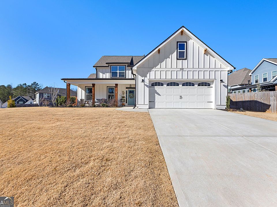 Better Than New! Built in 2022! This meticulously maintained home is move-in ready and waiting for you! Built by Dustin Shaw, this beautiful home sits on the largest lot in the neighborhood, offering ample space and privacy. Seller is a Southern living idea house designer who has brought this modern farmhouse to life. As you walk through the front door, you're greeted by a cozy, open-concept floor plan, perfect for entertaining. Gorgeous white oak hardwood floors run throughout the home. 12' foot ceilings in kitchen and dining room. The gourmet kitchen features a custom vent hood, gas cooktop, granite countertops, stainless steel appliances, soft close cabinets, a spacious island, and a walk-in pantry. The primary bedroom, conveniently located on the main level, boasts a gorgeous custom accent wall for a unique touch. The ensuite bathroom includes a free-standing soaking tub, a tiled walk-in shower, and a large vanity with double sinks. The custom-designed walk-in closet provides ample space for organizing your wardrobe and personal items. The main level also includes a laundry room and a stylish half bathroom. Upstairs, you'll find three additional bedrooms and a full bathroom with double sinks, making it perfect for family or guests. Ample walkout attic storage for all the things upstairs in two separate bedrooms. Enjoy cool fall nights outside on the large covered patio or gathered around the outdoor fire pit-perfect for relaxation and outdoor entertaining. Located in the desirable Twelve Parks community, this home offers access to a variety of amenities, 2 large swimming pool, tennis and pickleball courts, dog park, playground, and a clubhouse with a fitness center. This home is conveniently located minutes to Costco, Sam's, Peachtree City, Newnan, I-85, and a Publix that is currently under construction. Don't miss your chance to make this beautiful home yours-schedule a showing today! Ask your agent for the upgrade list.