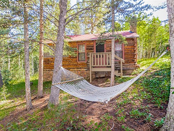 Nature lovers will delight with this rare opportunity to own a rustic cabin in the middle of the National Forest! Located on the way to the Crags Campground on 2-track dirt road only ½ mile from Hwy 67, this adorable dry-cabin is the perfect spot to come back to after hiking, riding, fishing, kayaking, or any other activity that this area is so well known for! Turnkey one-room cabin with a Loft includes everything currently in the cabin: camp stove, grill, propane bottles, picnic table, furniture, dishes, bedding, decor, games and camp toilet. Living Room has fireplace, sitting space, and bunk beds. Kitchen and Dining area have several windows that will make you feel part of the natural setting. Laminate flooring throughout, including in the 11x8 Loft that is perfect for additional sleeping space or storage. 3x2 privacy room with cassette camp toilet. Leasehold Interest in the land offered through the US Forest Service. Cannot be used as a primary residence, commercial, or rental property. Mueller State Park is nearby, along with the trailheads to Raspberry Mountain, the Crags, and even the Pikes Peak Summit! Make this your perfect, private glamping spot and be the envy of all your outdoor enthusiast friends!