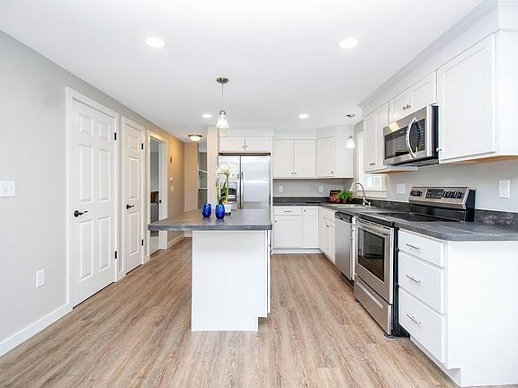 - Kit Dscrp: Flooring - Vinyl, Dining Area, Cabinets - Upgraded, Kitchen Island, Stainless Steel Appliances, Recessed Lighting, Countertops - Upgraded, Remodeled, Exterior Access