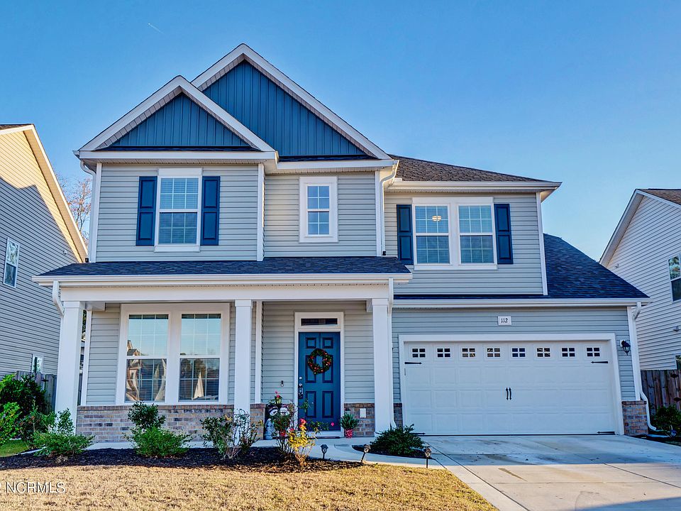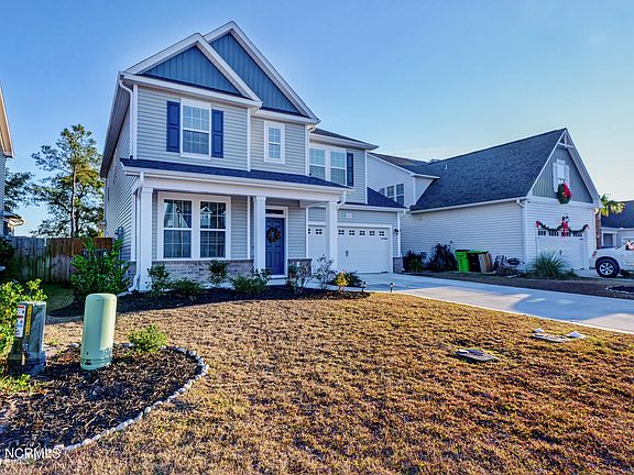 Welcome home! Move in ready home in the beautiful Sparrows Bend neighborhood. Centrally located and in the Topsail School district. From the moment you come in the front door you are greeted with a flex space or formal dining room with beautiful wainscoting. The open floor plan features a large great room with a fireplace, upgraded kitchen with extra large quartz island, upgraded backsplash and large eating area. There is a walk in pantry and Upgraded Butler's pantry with quartz counter for all your entertaining needs. Finishing out the 1st floor is a large office/study and powder room with large linen closet. The 2nd floor features a large owners suite with large en-suite bath room that includes 2 huge walk in closets, his and hers vanity, large soak in tub, and beautiful tiled shower. 2 additional bedrooms both with walk in closets, full sized bathroom with dual vanity, a large loft and laundry room to finish out the upstairs. Outside you can enjoy the sunrise on your covered porch and fully fenced in private back yard.
