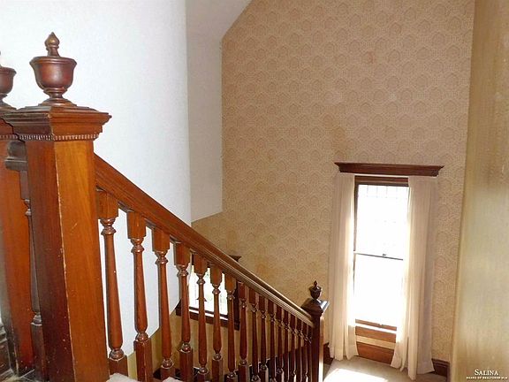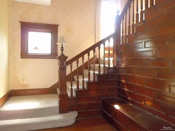 Lots of space, character and history here! Over 1600 square feet of absolute charm available in a central location near downtown Concordia, Kansas. Lovely Victorian Eastlake style home with interesting details, large rooms, high ceilings, lots of windows and two full baths. Elegant entry off the covered porch features an open stairway and beautiful paneled wood wall with bench. The extra large living and dining room is perfect for large gatherings and would adapt well to any style. A cottage kitchen opens up directly to the back yard -- perfect for the home gardener. An over-sized garage with additional off street parking fits three vehicles and is easily accessed from the alley. Upstairs laundry with newer washer and dryer makes chores convenient and the office overlooking the front yard is the perfect place to study, work or get some quiet time. Spend your summer cool as a cucumber with newer central air conditioning--and heat. Cute as a button, this home is priced to sell!