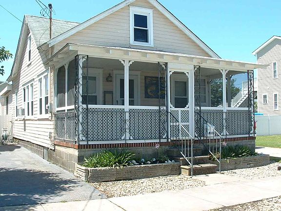 North Wildwood Pretty Beach Cottage.....this is a a two story 4 bedroom single family home that has been enjoyed by the same family for many years. This delightful Beach Retreat offers numerous features and amenities such as the vinyl replacement windows, easy to care for landscaping and lattice enhanced front screen porch. And, your house tour will start at the sweet screened in front porch with removable screen panels for winterizing, a great spot for morning coffee or evening cocktails enjoying the balmy breezes off the Bay which just minutes from the front door. In addition to the wide living room, there is also a real dining room plus a separate large eat-in kitchen with gas stove, having a dinette set at the sunny side window. The addition on the rear consists of a multi-purpose utlity/laundry room with a shower, washer, dryer, wash basin and gas hot water heater. This big extra room offers many options: storage, hobby area, desk space or playroom. On this first level are two good size bedrooms both with closets plus the main hall bath with tub and shower. The first floor has yellow pine hardwood flooring and many early Wildwood touches and architecture are evident throughout in the wood trim, moldings and passage doors. The first floor has 5 ceiling fans with light kits and 2 window air conditioners will stay. There are wood stairs at the west end of the living room which lead to the second floor having 2 more bedrooms and bath (this bath plus the first floor shower in utility room forms the 2nd full bath). The center front door at the screened in Sunroom/Florida Room is the main entry, however, another door from the front porch could be available directly to the 2nd floor.