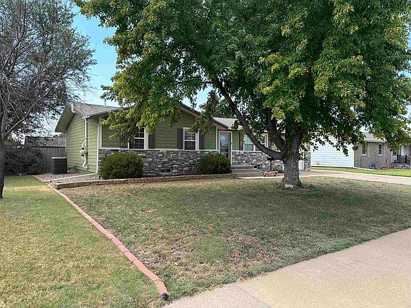 Charming, updated 5 bed/2 bath home in a quiet neighborhood in NW Hays!! It includes generous living spaces with sizeable bedrooms, large main bath that is accessible from the hallway, as well as the primary bedroom. The kitchen features oak cabinetry, stainless steel appliances, double oven, and built~in microwave. The basement provides a massive family room with wet bar, gas log fireplace, 2 beds/1 bath and a nice sized laundry room (2nd W/D hookup in main floor bath). Upgrades within recent years include windows, patio door and Malarkey roof. Low maintenance fiber~cement siding and stone offer great curb appeal!! The large fenced back yard includes a new covered patio, 2 additional patio areas, water well, garden shed and separate fenced area for the pups. Don’t miss out on this one!! Contact Michelle Funk~Dowis today for your personal tour!! 785~623~3253..