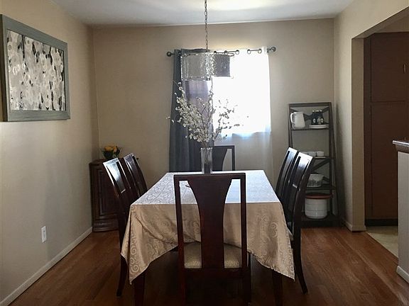 Lovely well-maintained bright and airy One Family contemporary home with gleaming hardwood floors flow through out the house. Also features, huge Family Room with sliding door leading to a gorgeous backyard, spacious Living Room with sliding door to the terrace, separate Dining Room and eat-in kitchen with granite counter top and lots of cabinets. Nice size bedrooms with wall to wall closets, big bathrooms, lots of windows, new roof, new HVAC, new windows and new counter tops. 3 car parking with attached garage being used as a storage can be converted back to the original garage. Near parks, school, stores, bus stop and NJ Turnpike. Half block to New York City Bus Stop.