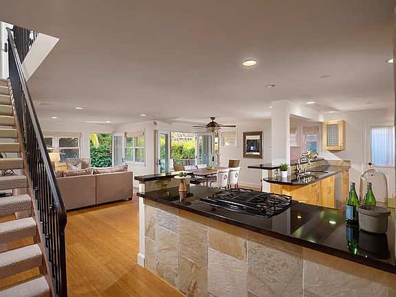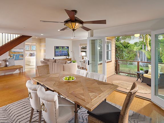 Situated minutes from the beach, Del Mar shopping and local restaurants, this quintessential Craftsman-style bungalow is the perfect blend of lifestyle and aesthetics. Natural light floods this open-concept home in which the dining, living, and kitchen areas blend seamlessly and enjoy views of the lushly landscaped grounds. Thoughtfully designed, the home enjoys a total of 3 bedrooms, including a master suite on each level and one secondary guest bedroom. The upstairs master suite encompasses the entire second floor and includes a sitting area and ocean view balcony from which to enjoy endless sunsets. Lovingly maintained and renovated in 2007, this home showcases hardwood and stone flooring, plush carpet in the formal living room and all bedrooms, and a beautiful chef’s kitchen with stainless steel appliances, bar and plenty of pantry storage. The spacious rear yard encompasses a large grassy area, citrus, avocado and banana trees, and patio with pergola all perfect complements to this premier Southwest San Clemente home. Additional highlights include recessed lighting throughout, surround sound, indoor ceilings fans, plus a 2-car garage. This turnkey home is not to be missed.