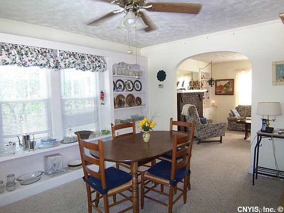 Charming Sherrill Cape! Hardwood floors! Living room with gas fireplace, formal dining with built-ins, oak kitchen with appliances, 2 bedrooms plus a bonus room. Full bath, full basement, sun room, rear porch and one stall garage. Thermopane windows, gas furnace with central air. Charm exudes from this home! Taxes are shown without exemptions.