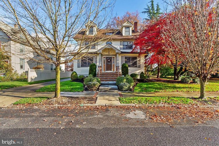 Tremendous opportunities including positive cash flow from this beautifully updated, well maintained, in town duplex home with large detached garage just a couple of blocks from Historic Main Street, the Public Library and the Recreation Center. Both units to convey at this price with a total of 6 bedrooms and 4 full bathrooms. This duplex layout is unique for Moorestown as it is an up down rather than side by side. Each unit is quite spacious and offers great storage. The ground floor portion offers 2 bedrooms and 1 full bathroom plus open kitchen with breakfast bar, stainless steel appliances, dining area and living room with high ceilings and LED lighting. There is an oversized closet at the front entrance and a large linen closet in the bedroom hallway. The back door from the driveway leads to the laundry room with full size washer and dryer. Excellent off street parking area adjacent to the driveway for no less than 4 cars so all can maneuver up and down the driveway, still 2 more spots in the detached garage with electric, heat and additional storage area. The basement of this unit offers another large bedroom, full bathroom, walk-in closet, family room with built-in shelving and a bonus room, great for home office or play space. This is a cheerful space, very cozy and boasts a built-in refreshment area with modern cabinetry. Unfinished room has shelving for storage and a waterproofed, insulated crawl space for storage as well. The outside staircase with wide treads, re-built apx 6 years ago takes you to the 2-story upper unit which has 3 bedrooms all with great closet space and 2 full bathrooms, kitchen, laundry utility room, family room and living room. Great light throughout the upper and lower portions. Plumbing has been updated including the sewer line, windows have been replaced, upgraded vinyl siding, modern electric, central air and gas heat throughout the interior. Excellent location is also just a short walk to Maple Dawson park and Baker Elementary school. Many ways to take advantage of all that this charming house has to offer!