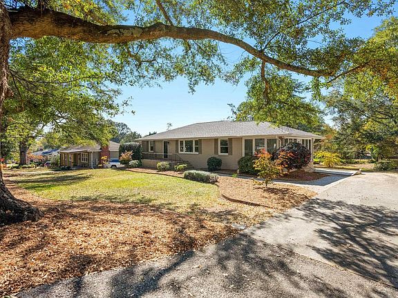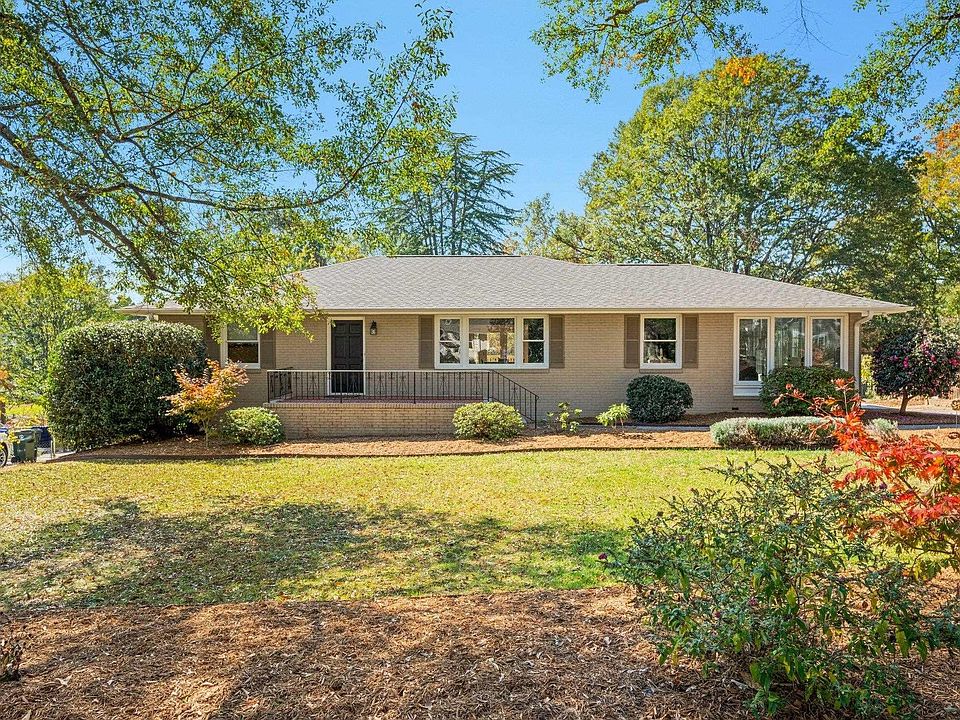 Minutes to downtown! Renovated and move-in ready, this 3-bedroom, 2-bathroom brick ranch home features a sunroom, large deck, basement, and attached garage on a huge double lot located on a quiet street just off E. North St, only a short walk to restaurants! Enter from the front porch into the living room, which has hardwood floors throughout the home, lots of windows, and charming built-in bookcases. The living room adjoins the expansive dining room, which opens into a large kitchen with ample cabinetry, granite countertops, a tile backsplash, and stainless appliances. Off the kitchen is the inviting and airy sunroom with a beadboard ceiling and a separate mini-split system to keep the space temperate year-round. The primary bedroom has a walk-in closet and a full en suite bathroom that has been remodeled to feature a large tile shower with a frameless glass surround. On the main level, there are two additional bedrooms, another completely remodeled full bathroom, and the laundry room. Off the dining room are brand new French doors leading to a huge deck overlooking the massive double lot, which is almost half an acre. Downstairs, there is an unfinished basement perfect for storage or a workshop, and a one-car attached garage. A brand-new roof was just installed in 2024, along with brand new French doors and a deck, plus the main HVAC and the mini split were replaced in 2022. This home is truly move-in ready and minutes to downtown Greenville! Schedule your showing today!