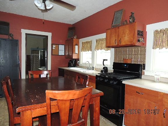 Relax on the covered front porch and/or enjoy the pool in the back yard of this lovely home in this quiet small town. Nice older home with large room and high ceilings, natural wood work, gas fireplace, fenced back yard, above ground pool with decking, detached 2 car garage.