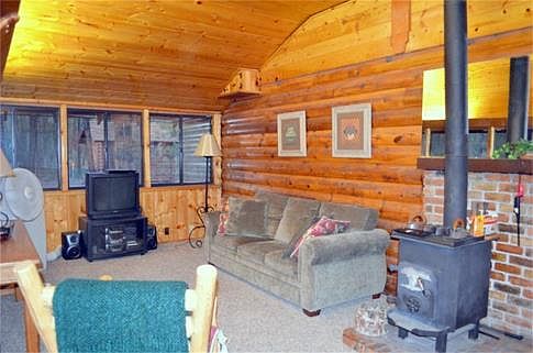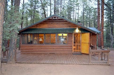 LOOK NO MORE FOR YOUR LOG CABIN IN THE TALL PONDEROSA PINE TREES, BORDERING NATIONAL FOREST ON 2 SIDES. THIS CHARMING HOME HAS A NEW METAL ROOF, NEW PAINT AND STAIN ON THE OUTSIDE. INSIDE IS A LARGE LIVING ROOM WITH NEW CARPET, WOOD STOVE, KNOTTY PINE WALLS AND VAULTED CEILINGS. KITCHEN/DINING ROOM OFFERS WOOD FLOORING, REMODELED KITCHEN WITH PLENTY OF CABINETS AND COUNTER SPACE, WOOD BURNING BRICK FIREPLACE, 2 BEDROOMS AND 1 FULL BATH. ALL ROOMS HAVE BEEN PAINTED AND NEW CARPET, BATHROOM HAS BEEN REMODELED. STORAGE SHED AND FIRE PIT. FURNISHING ARE NEGOTIABLE...SELLER WILL PREPARE A SMALL LIST OF ITEMS THAT WILL NOT CONVEY (TOOLS, ROCKING CHAIR, TABLE IN LIVING ROOM & A FEW OTHER PERSONAL ITEMS) LOCATED 20 MINUTES FROM LAKES AND PLENTY OF HIKING TRAILS. A GREAT RETREAT. ALL ELECTRIC