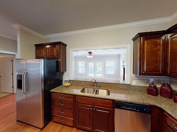 All new paint. Granite counter tops. Natural gas. Awesome kitchen with lots of cabinets. Pantry. On the golf course. Vinyl windows. 6x19 covered porch. Appraised in 2010 for $294,000. Floored attic. Master bedroom downstairs with a large bath and tile shower. Formal dining room. eat in kitchen. 3 bedrooms/ 1 bath upstairs. Community pool and golf course currently closed.