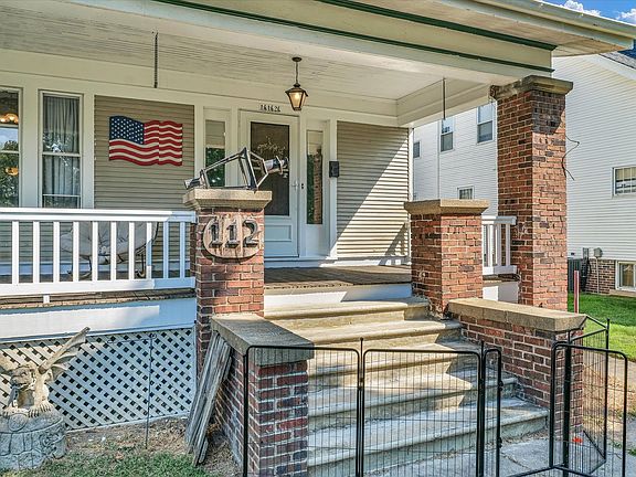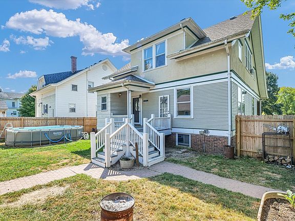 Introducing a charming two-story, 3 spacious bedroom and 1 1/2 bath home nestled across from the picturesque Harrison Park. This historic gem showcases hardwood floors, a captivating banister, pocket glass doors into the living room, and a covered front porch offering tranquil park views. The property also boasts a newer insulated heated 2-car garage, ideal for creating your dream workshop. Step out onto the patio, complete with a pergola and a privacy fence, creating the perfect setting for hosting unforgettable gatherings. The partially finished basement offers versatile space, the roof is just 5 years old, and a new water heater was installed in 2023. Don't miss the opportunity to make this your dream home!