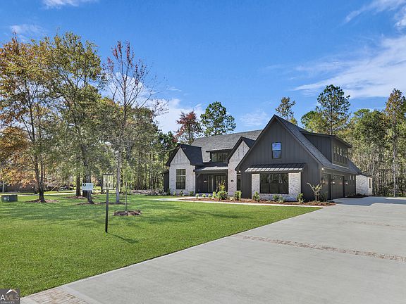 Welcome home to timeless elegance in the prestigious Wakefield Plantation. Situated on 3.49 acres, this new construction custom home built by Cypress Customs LLC is a stunning blend of refined craftsmanship and modern luxury. The exterior showcases brick-accented walkways, full landscaping with irrigation, and a striking mix of brick and cement board with black metal roof accents. Inside, every detail has been thoughtfully designed-from the gourmet kitchen featuring Quartz countertops, ZLINE appliances, and dual pot fillers, to the vaulted living room with exposed beams and a vent less gas fireplace. The primary suite offers a spa-inspired retreat with a freestanding soaking tub and custom tile shower. Additional touches include a hidden Murphy bed and built-ins, custom closets, crown molding, and epoxy garage floors. Every inch of this home reflects the exceptional quality and artistry that define Cypress Customs-where luxury and comfort unite in perfect harmony.