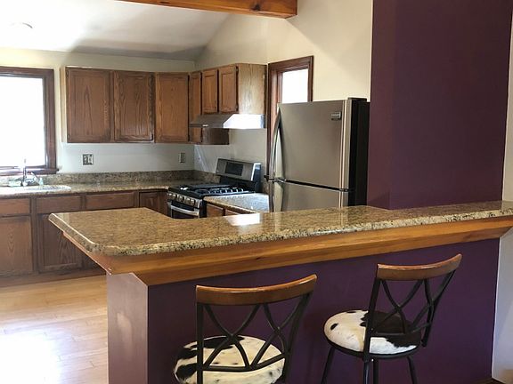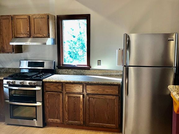 An idyllic oasis surrounded by beautiful trees on a large lot. The kitchen has been updated with granite countertops and new appliances.The range uses propane and the tank is owned by the seller so no worry about rental fees. The open concept kitchen/dining area has a high cathedral ceiling with with wood beams that make the space even airier. Enjoy the second floor laundry as you pick from two lovely bedrooms (one is used now as the living room). Downstairs, find the master suite with a private bathroom and french doors leading outside. Across the hall find another spacious living area that can be used as a living room, playroom, or even more sleeping space. If you are a car enthusiast, the huge garage offers plenty of work space, 100 amp power service, great lighting and lots of room for your collection or truck. Like bunnies? There is even a rabbit coop!